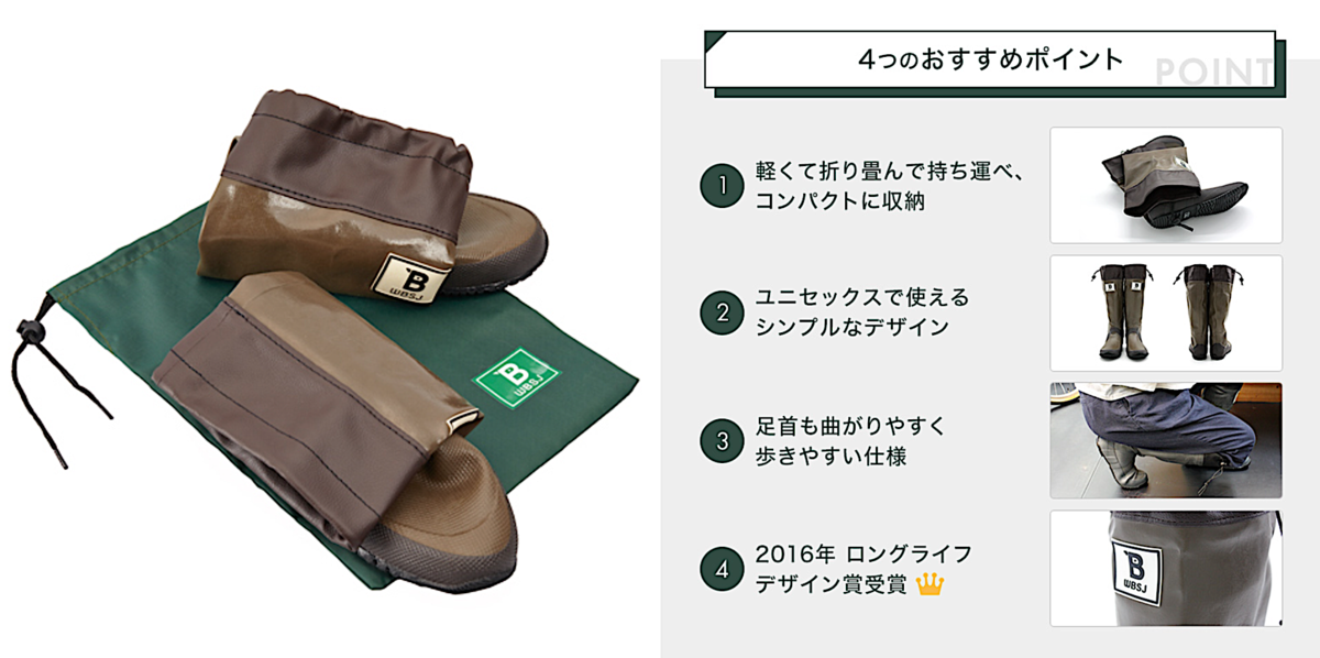 通常のレインブーツより歩きやすく、滑りにくく安定感があります。