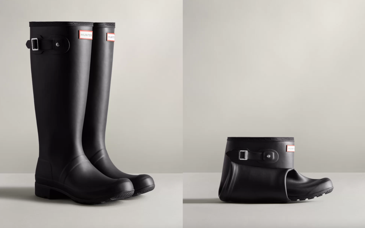 パッカブルレインブーツとは、こんなふうに折りたためるレインブーツです。