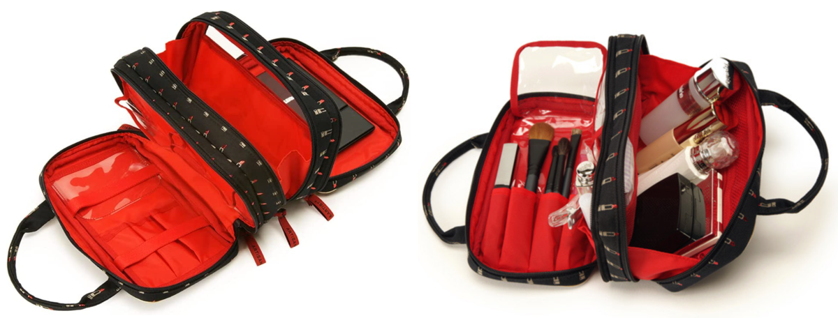サイズや仕切りは同じ、本家は内側が赤、ファスナーのつまみが赤リボン、